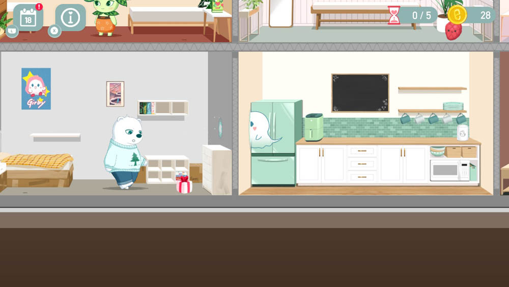 Habe ich mit zwei Figuren die höchste Beziehungsstufe erreicht, ziehen die beiden aus und führen nochmal eine letzte Unterhaltung – aus dieser geht jedoch so gut wie nie hervor, dass die beiden ausziehen. Und keine der anderen Figuren geht im persönlichen Tagebuch darauf ein, dass zwei Leute ausgezogen sind. So harmonisch und familiär wie alle miteinander sind, wären kleinere Erinnerungen á la „Es war schön, als Noir noch bei uns gelebt hat“ oder „Ich hoffe, Wobbles geht es gut“ ganz nett und würden die emotionale Bindung zu den Figuren noch ein bisschen steigern.