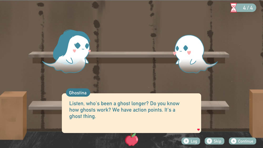 Love, Ghostie kommt mit einem klassischen Tagesdesign daher. Das bedeutet, dass du am Tag eine gewisse Anzahl an Aktivitätenpunkte zur Verfügung hast (Ghostina sagt: Als du noch gelebt hast, hast du geschlafen, wenn du ausgelaugt warst, im Nachleben hast du eben Aktivitätenpunkte). Sind die Punkte alle, beendest du den Tag und siehst zum einen das Date, das du eventuell arrangiert hast, und wie sich deine Entscheidungen vom Tag entfalten. Am nächsten Tag startest du wieder – direkt nachdem gespeichert wurde.