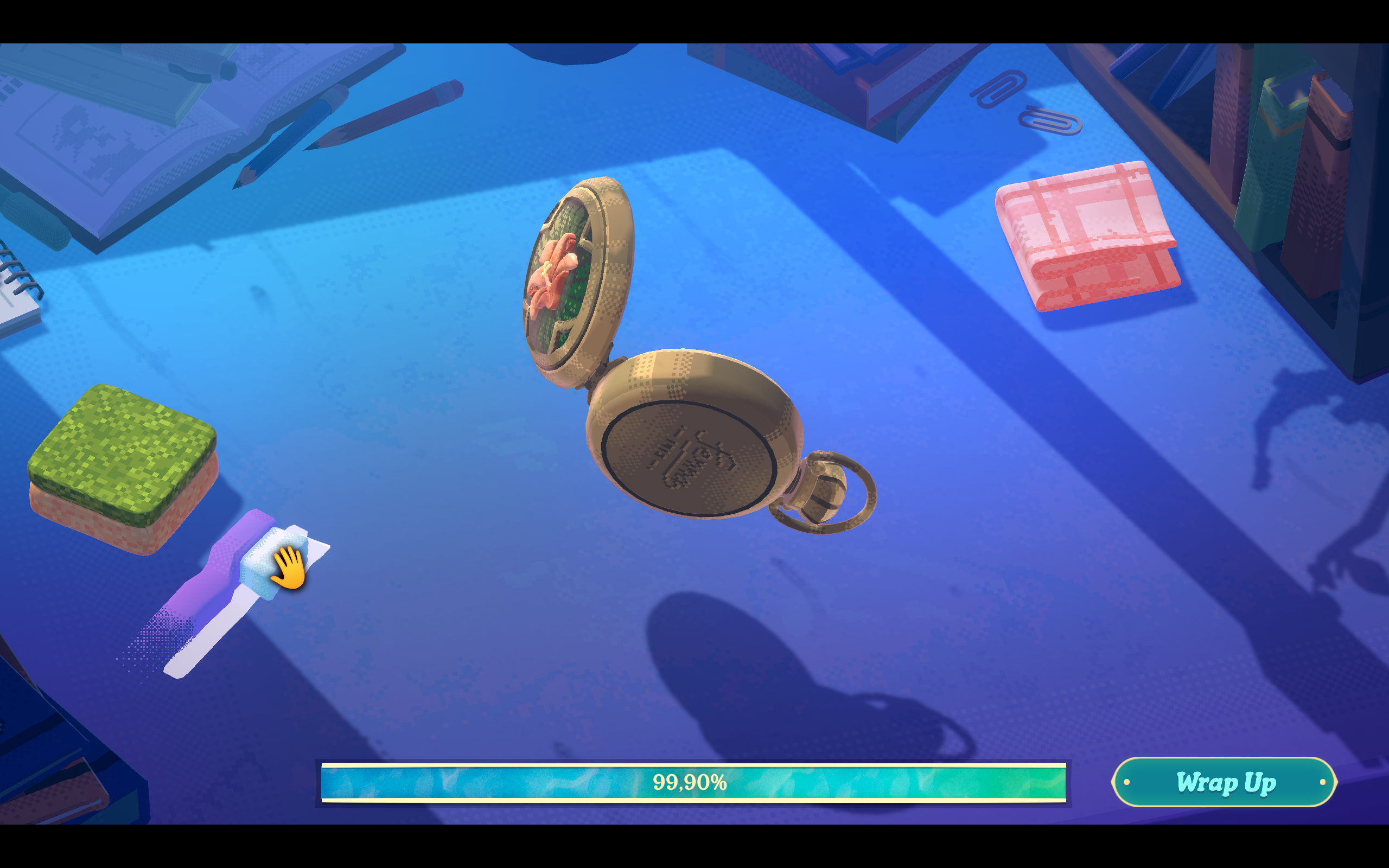 Das finde ich sehr schade, gerade weil es so viel Spaß macht, die Erinnerungen zu reinigen – doch dann stellt mir das Spiel ein Bein und lässt mich nicht richtig reinigen. Ich kann zwar auch reinzoomen und den Gegenstand in alle möglichen Richtungen drehen, doch so richtig hilfreich war das nicht. Zumal das Drehen auch nicht immer reibungslos funktioniert und der Zoom manchmal auch viel zu nah an meiner Nase ist. Gerade die Steuerung über ein Touchpad auf dem Laptop macht alles ein bisschen komplexer und herausfordernder. Nichts desto trotz ist es eine schöne Erfahrung, die Dinge zu reinigen und zu schauen, was sich unter dem ganzen Staub wirklich befindet.